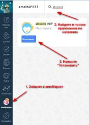 Откройте amo-market, найдите в поиске приложение alovoice и установите его.